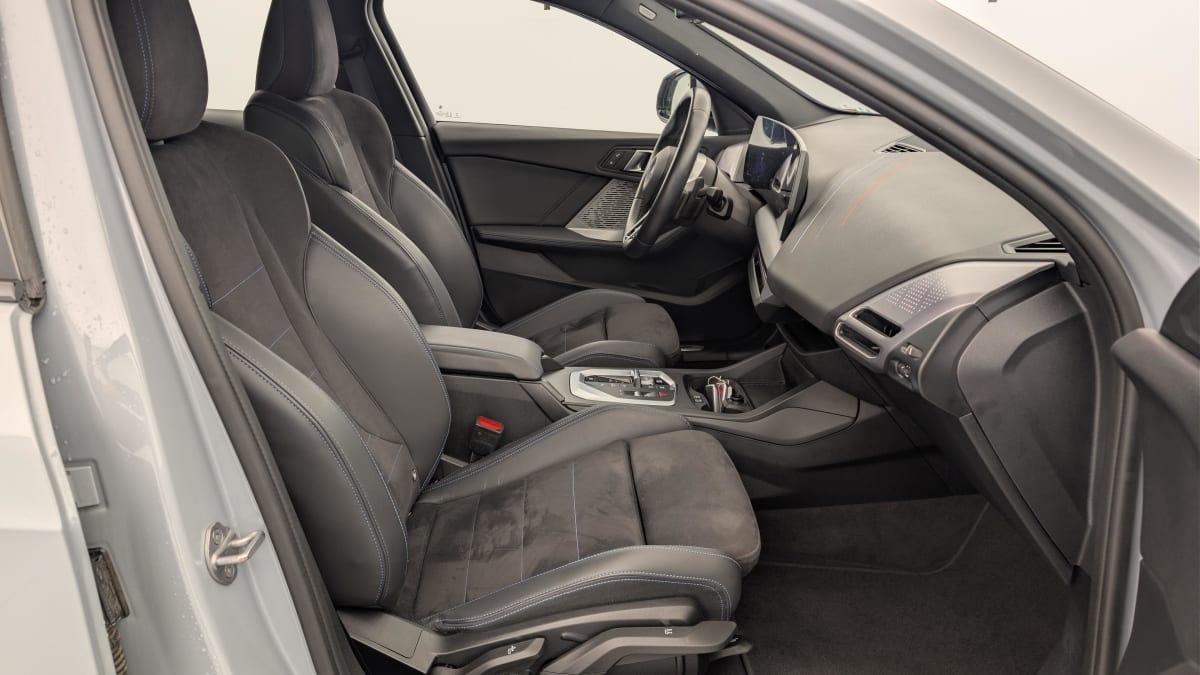 sellerie alcantara / similicuir veganza schwarz avec surpiqûres bleues