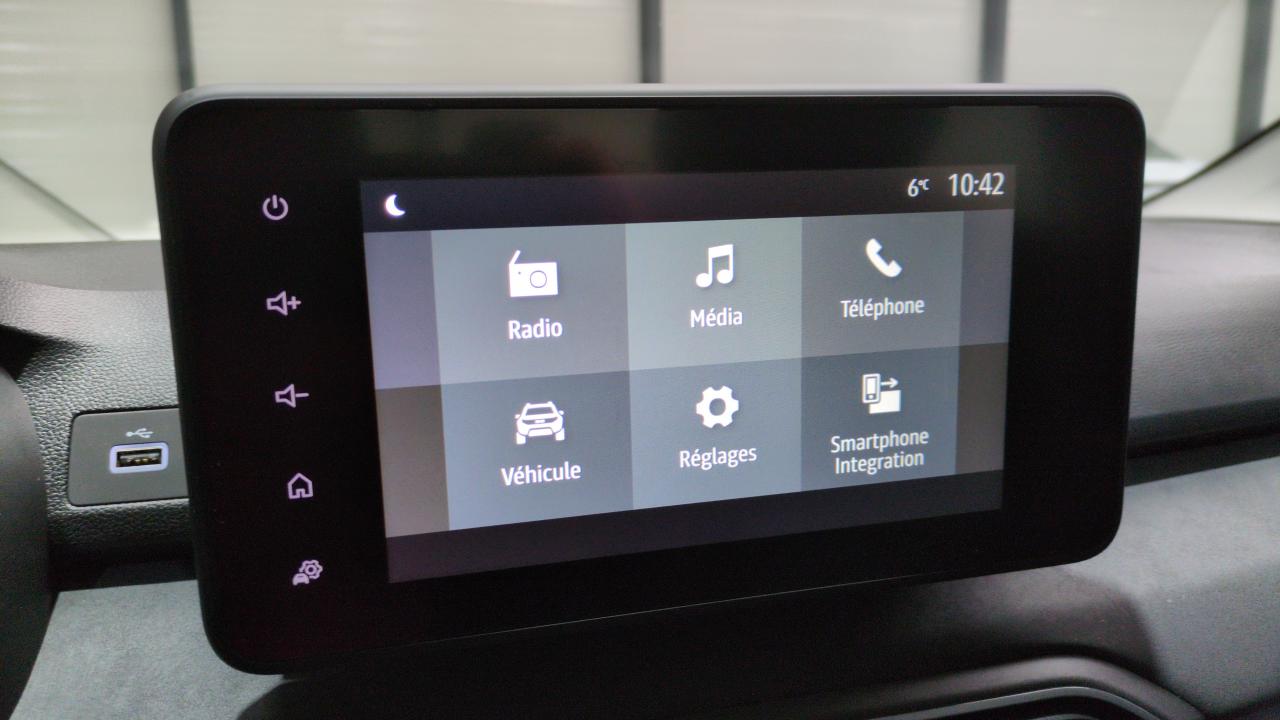 media display : ecran tactile 8'' sans navigation + radio + réplication smartphone usb + 4 haut-parleurs audiostreaming bluetooth + satellite de commandes au volant + 1 prise usb-a et 1 prise usb-c